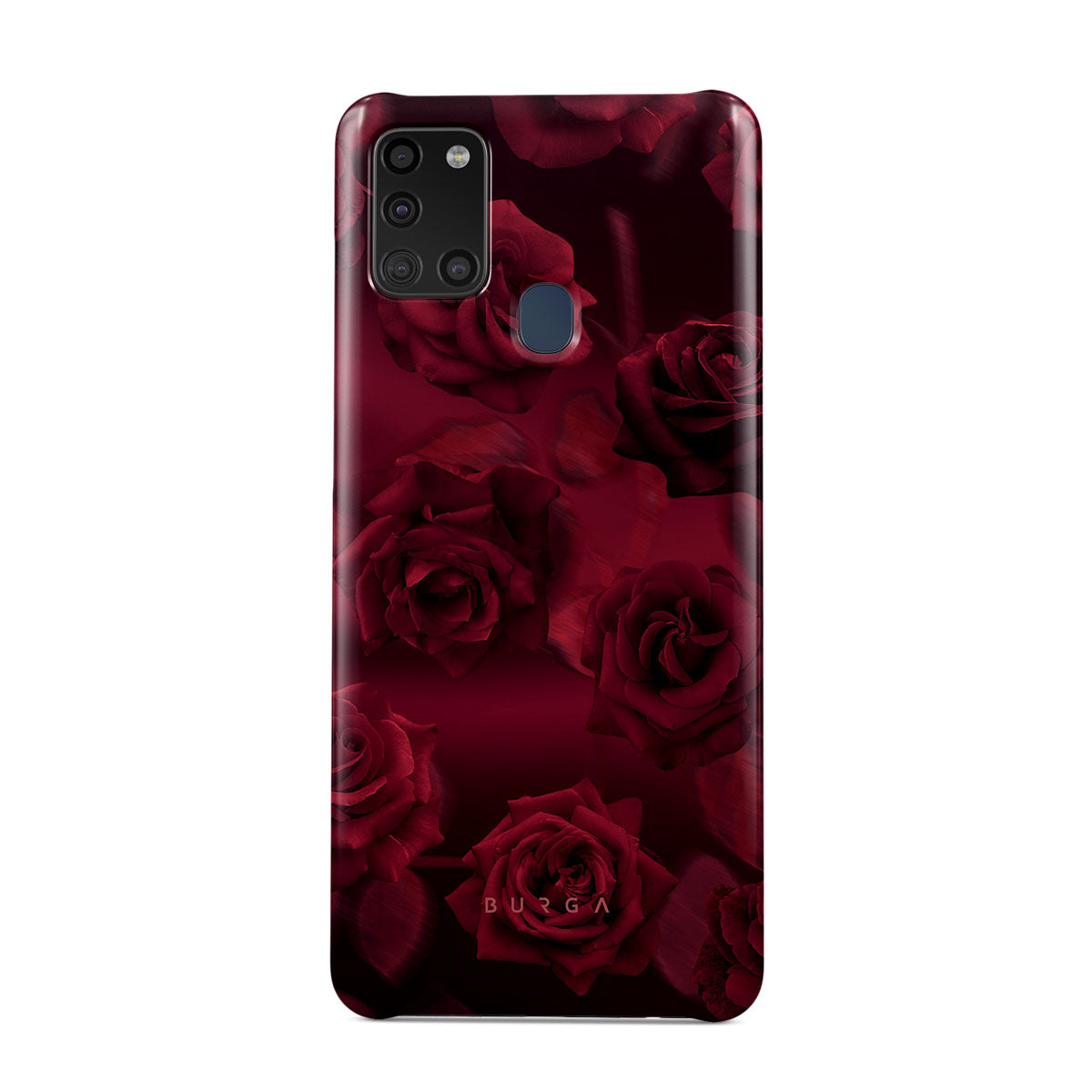 Dive into our intriguing Femme Fatale Samsung Galaxy A21s 4G phone case design. These deep red roses aren't just flowers—they're silent confessions of candlelit romance and moments caught in stolen glances. Crafted for those who captivate at every turn.