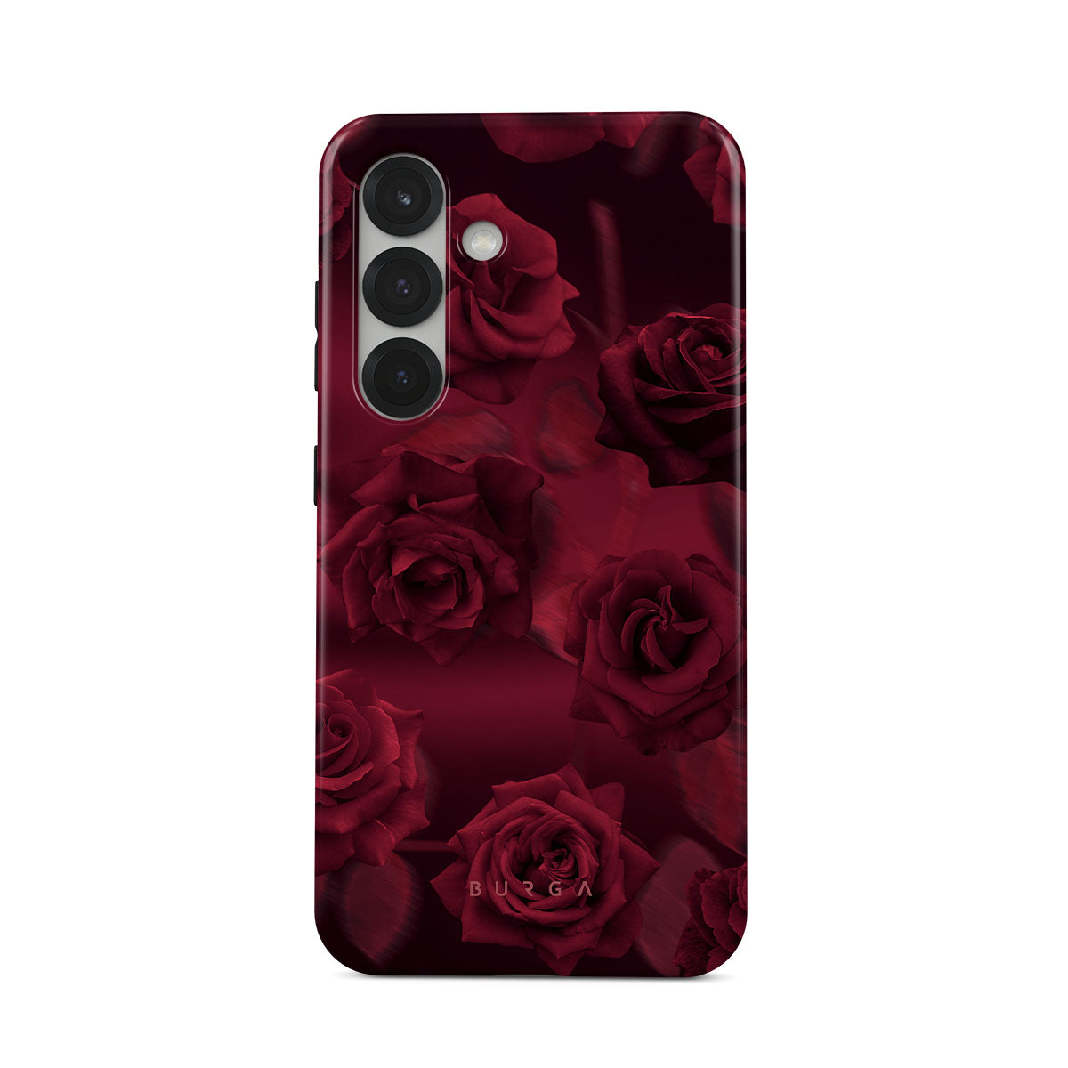 Dive into our intriguing Femme Fatale Samsung Galaxy S25 phone case design. These deep red roses aren't just flowers—they're silent confessions of candlelit romance and moments caught in stolen glances. Crafted for those who captivate at every turn.