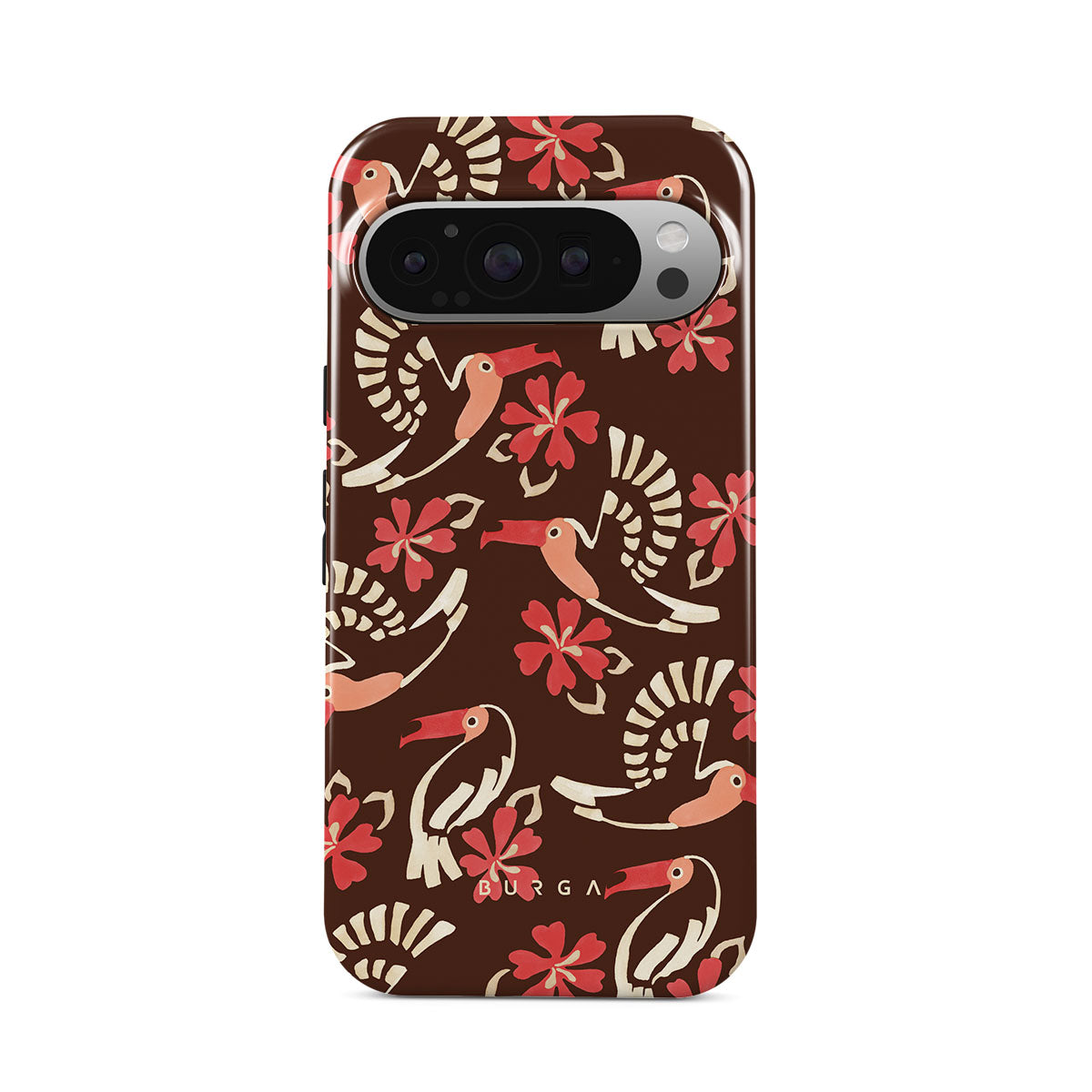A jungle rave. Parrots, florals, bursts of red and cream—like someone threw a party in the rainforest and forgot to send you the invite. This Google Pixel 9 Pro XL phone case design is your RSVP.