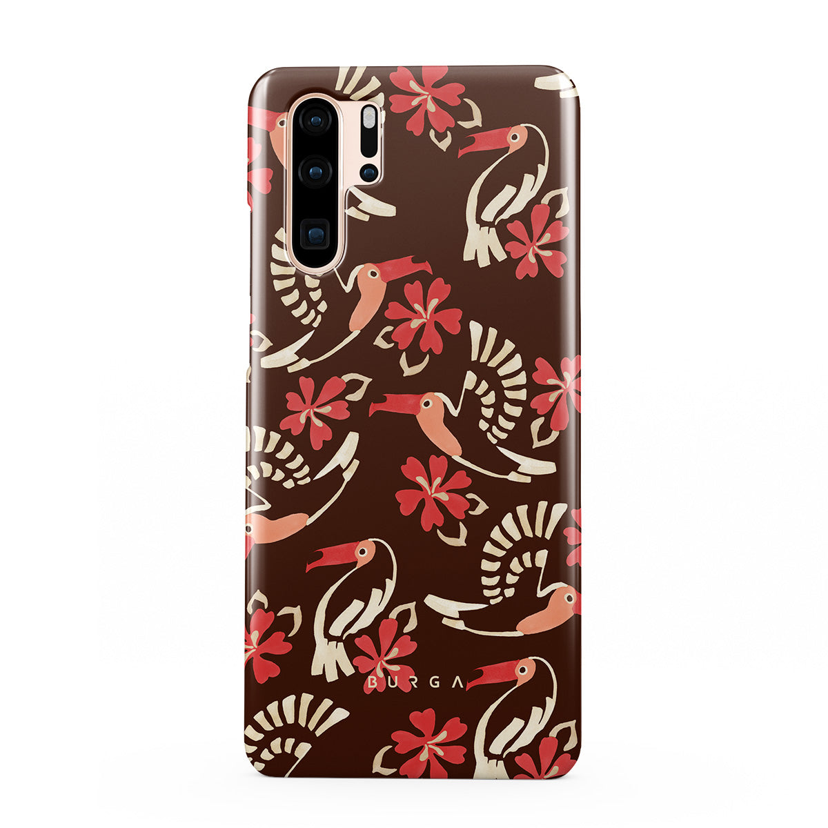 A jungle rave. Parrots, florals, bursts of red and cream—like someone threw a party in the rainforest and forgot to send you the invite. This Huawei P30 Pro phone case design is your RSVP.