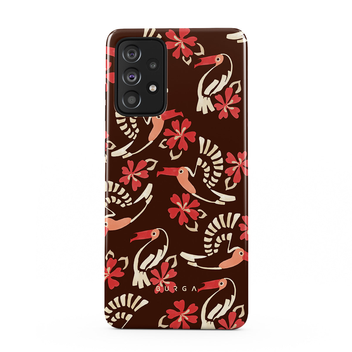 A jungle rave. Parrots, florals, bursts of red and cream—like someone threw a party in the rainforest and forgot to send you the invite. This Samsung Galaxy A52 / A52S 4G / 5G phone case design is your RSVP.