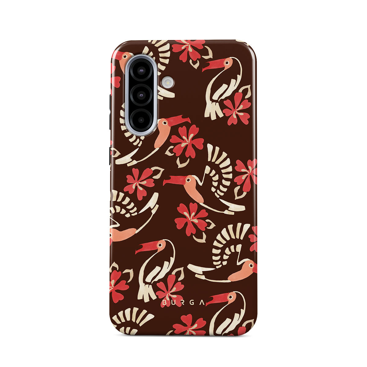 A jungle rave. Parrots, florals, bursts of red and cream—like someone threw a party in the rainforest and forgot to send you the invite. This Samsung Galaxy A56 5G phone case design is your RSVP.
