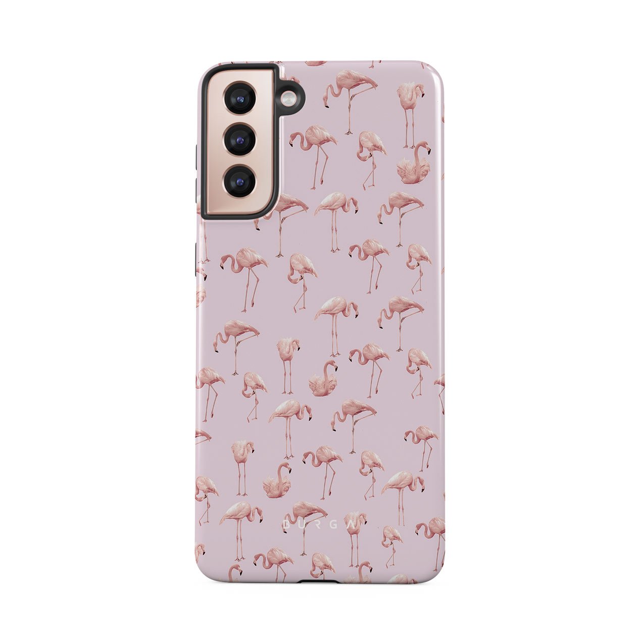 With our Nostalgic Pink Samsung Galaxy S21 Plus phone case cover, you can have a chic pink flamingos pattern combined with a pretty pink background. Add a modern art feel to your phone. No one said that a protective phone case needs to be boring.