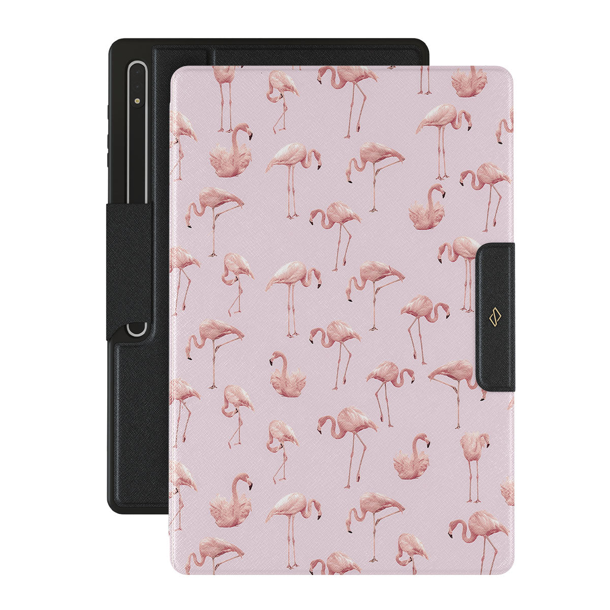 With our Nostalgic Pink Samsung Galaxy Tab S9 Ultra folio case cover, you can have a chic pink flamingos pattern combined with a pretty pink background. Add a modern art feel to your Galaxy Tab. No one said that a protective Galaxy Tab case cover needs to be boring.