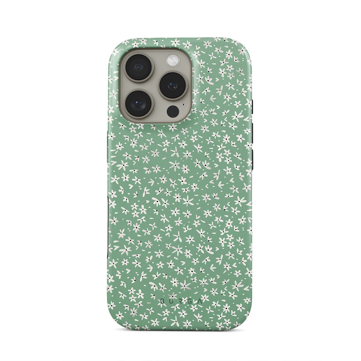 Our minimalistic floral Lush Meadows iPhone 16 Pro phone case is inspired by the green fields covered in petite and dainty flowers. The soft green phone case with a delicate floral pattern creates a perfect feminine design that will fit every occasion.