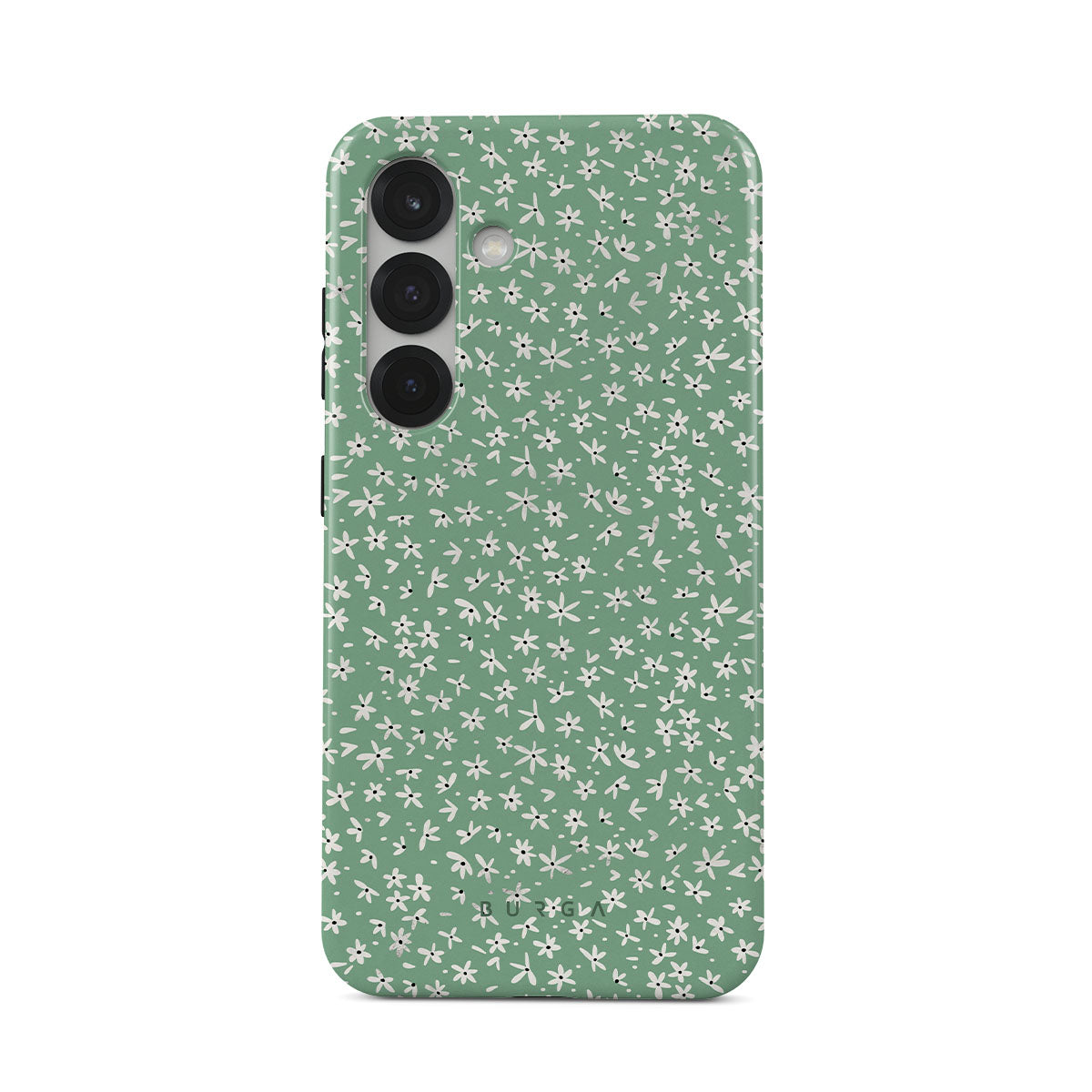 Our minimalistic floral Lush Meadows Samsung Galaxy S25 Plus phone case is inspired by the green fields covered in petite and dainty flowers. The soft green phone case with a delicate floral pattern creates a perfect feminine design that will fit every occasion.