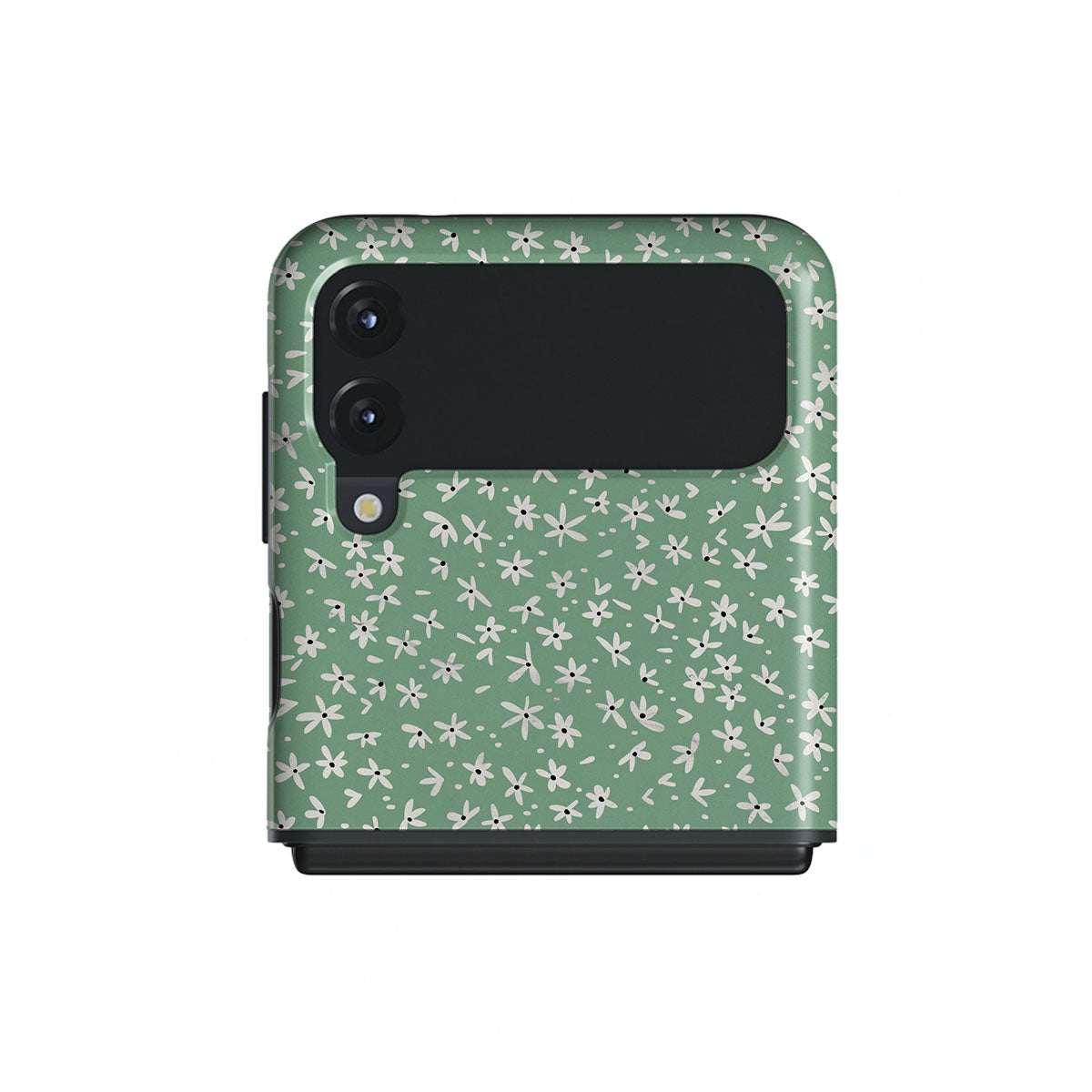 Our minimalistic floral Lush Meadows Samsung Galaxy Z Flip 3 phone case is inspired by the green fields covered in petite and dainty flowers. The soft green phone case with a delicate floral pattern creates a perfect feminine design that will fit every occasion.