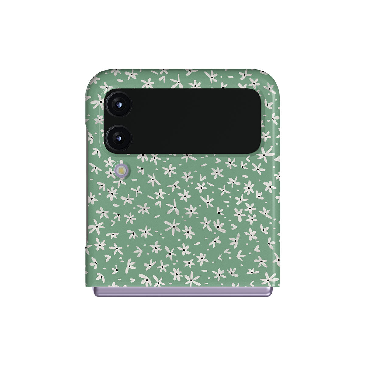 Our minimalistic floral Lush Meadows Samsung Galaxy Z Flip 4 phone case is inspired by the green fields covered in petite and dainty flowers. The soft green phone case with a delicate floral pattern creates a perfect feminine design that will fit every occasion.