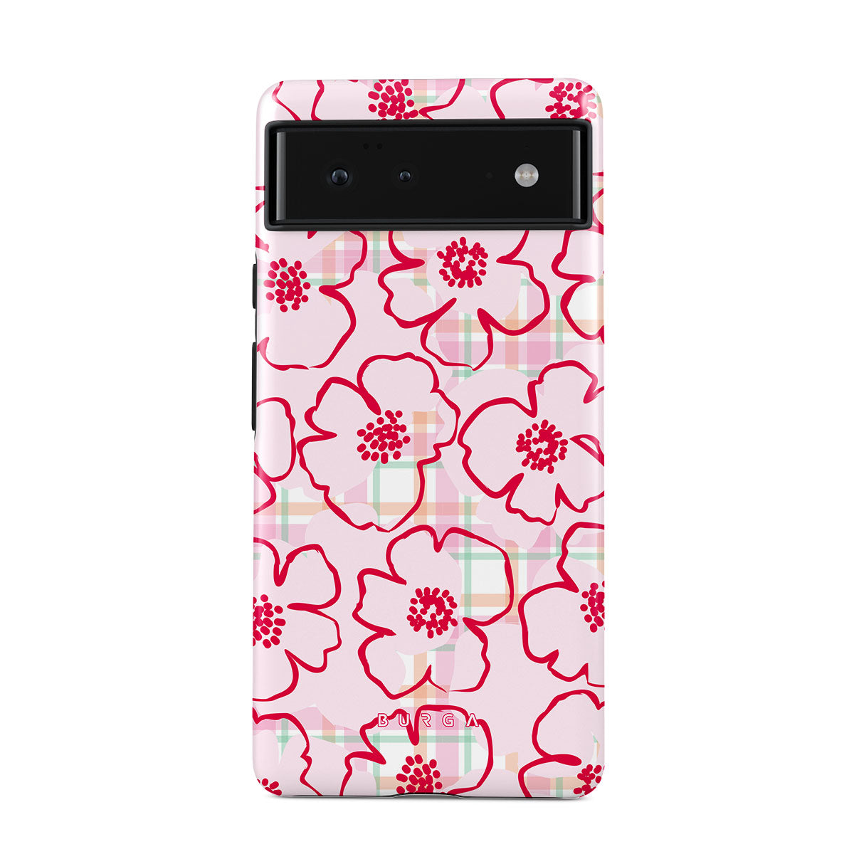 Pink flowers bloom from this Google Pixel 6a phone case design—just like the ones you’d pick and put in your hair, simple and pretty, turning every walk through the garden into a fairy tale.