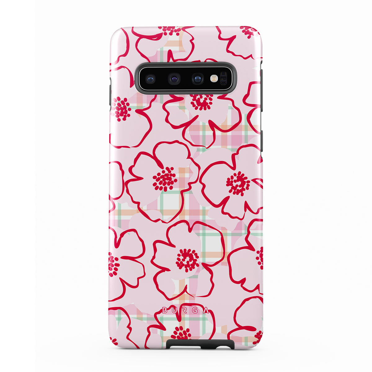 Pink flowers bloom from this Samsung Galaxy S10 4G phone case design—just like the ones you’d pick and put in your hair, simple and pretty, turning every walk through the garden into a fairy tale.