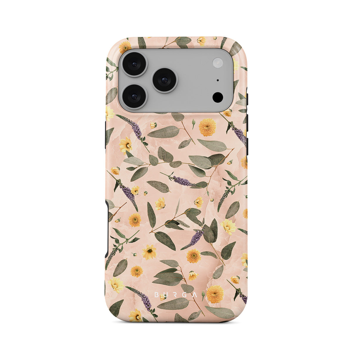Sunday Brunch iPhone 17 Pro Max phone case features a timeless flower pattern. The soft-toned case with a pop of lavender and yellow colors will add a splash of energy to your style while protecting your phone from dangerous falls.