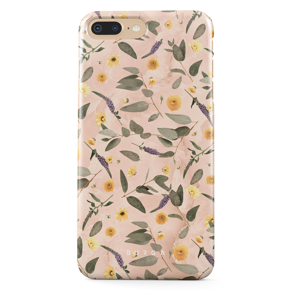 Sunday Brunch iPhone 7 Plus 8 Plus phone case features a timeless flower pattern. The soft-toned case with a pop of lavender and yellow colors will add a splash of energy to your style while protecting your phone from dangerous falls.