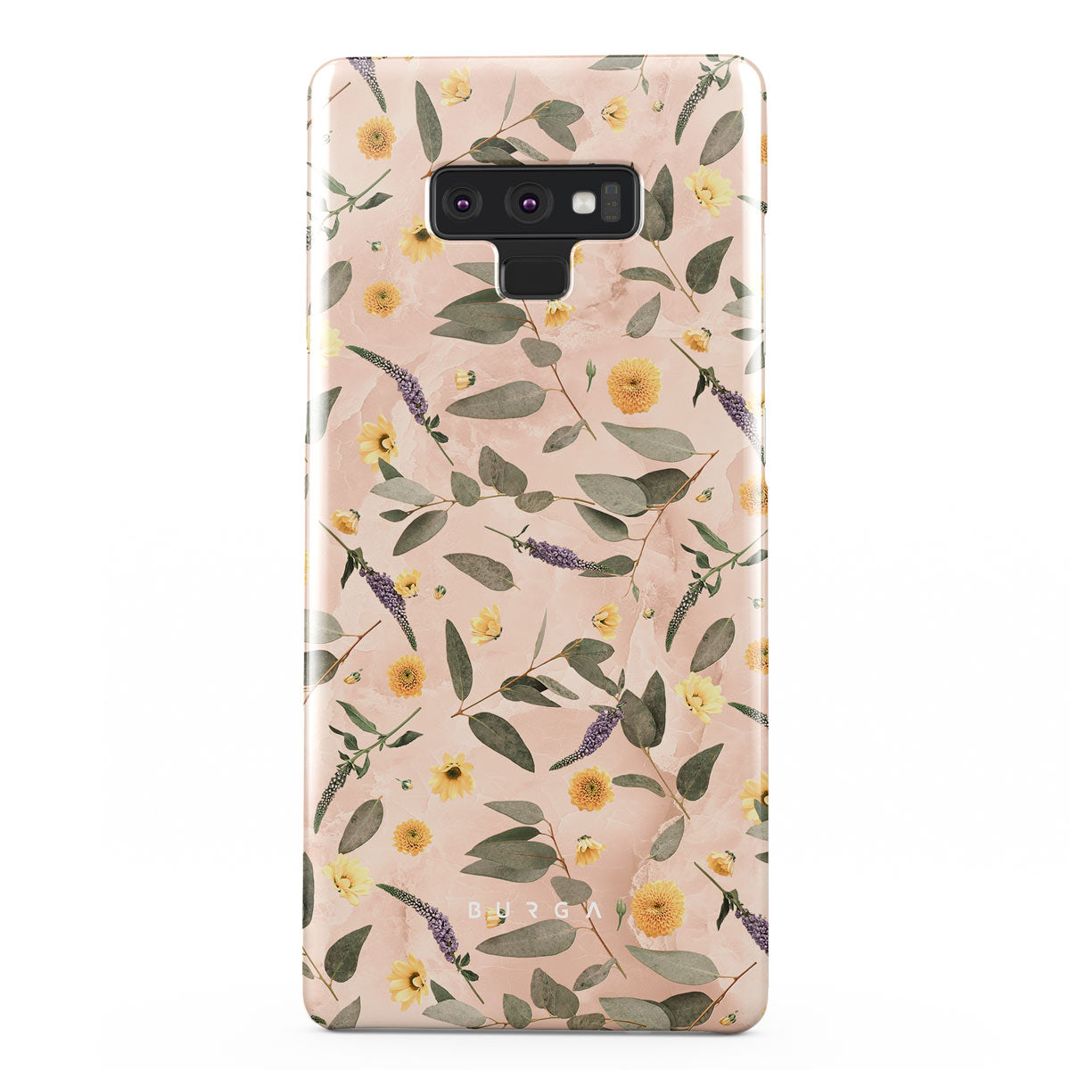 Sunday Brunch Samsung Galaxy Note 9 phone case features a timeless flower pattern. The soft-toned case with a pop of lavender and yellow colors will add a splash of energy to your style while protecting your phone from dangerous falls.
