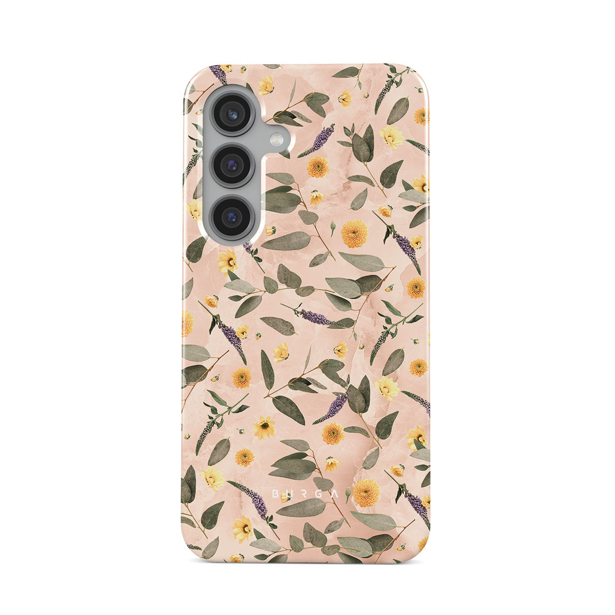 Sunday Brunch Samsung Galaxy S24 FE phone case features a timeless flower pattern. The soft-toned case with a pop of lavender and yellow colors will add a splash of energy to your style while protecting your phone from dangerous falls.