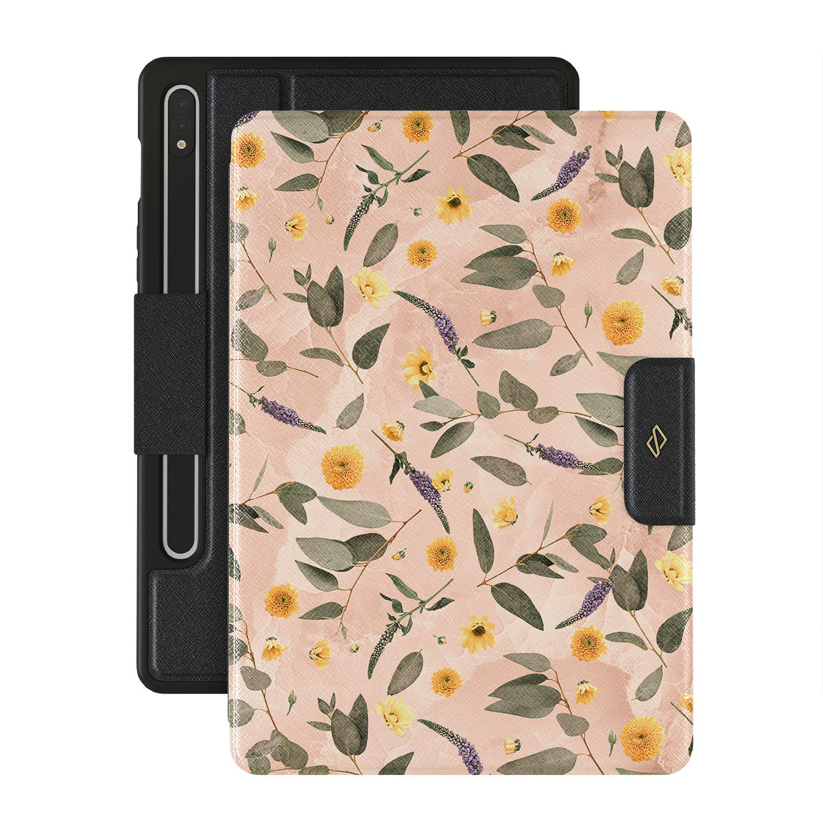 Sunday Brunch Samsung Galaxy Tab S9+ folio case features a timeless flower pattern. The soft-toned case with a pop of lavender and yellow colors will add a splash of energy to your style while protecting your Galaxy Tab from dangerous falls.