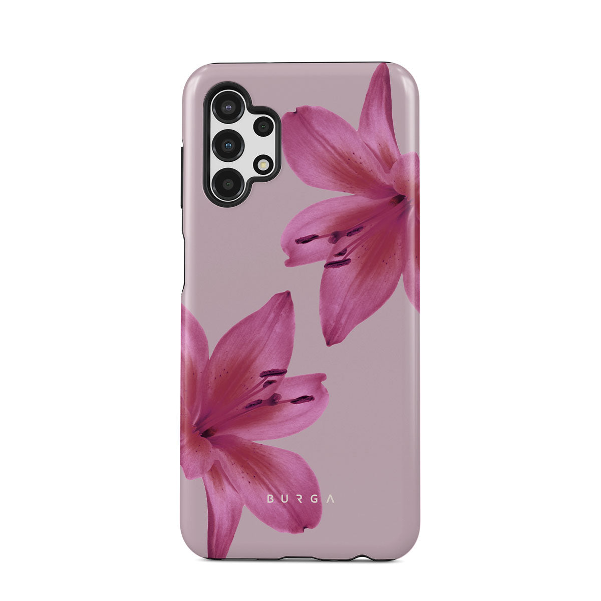 A gentle hush of pink forms where soft lilies sway. Their tender petals — a silent ode to the delicate dance of life. The Fragile Beauty Samsung Galaxy A13 4G phone case design invites you to lean into the soft embrace of nature, letting its subtle rhythms guide your journey.