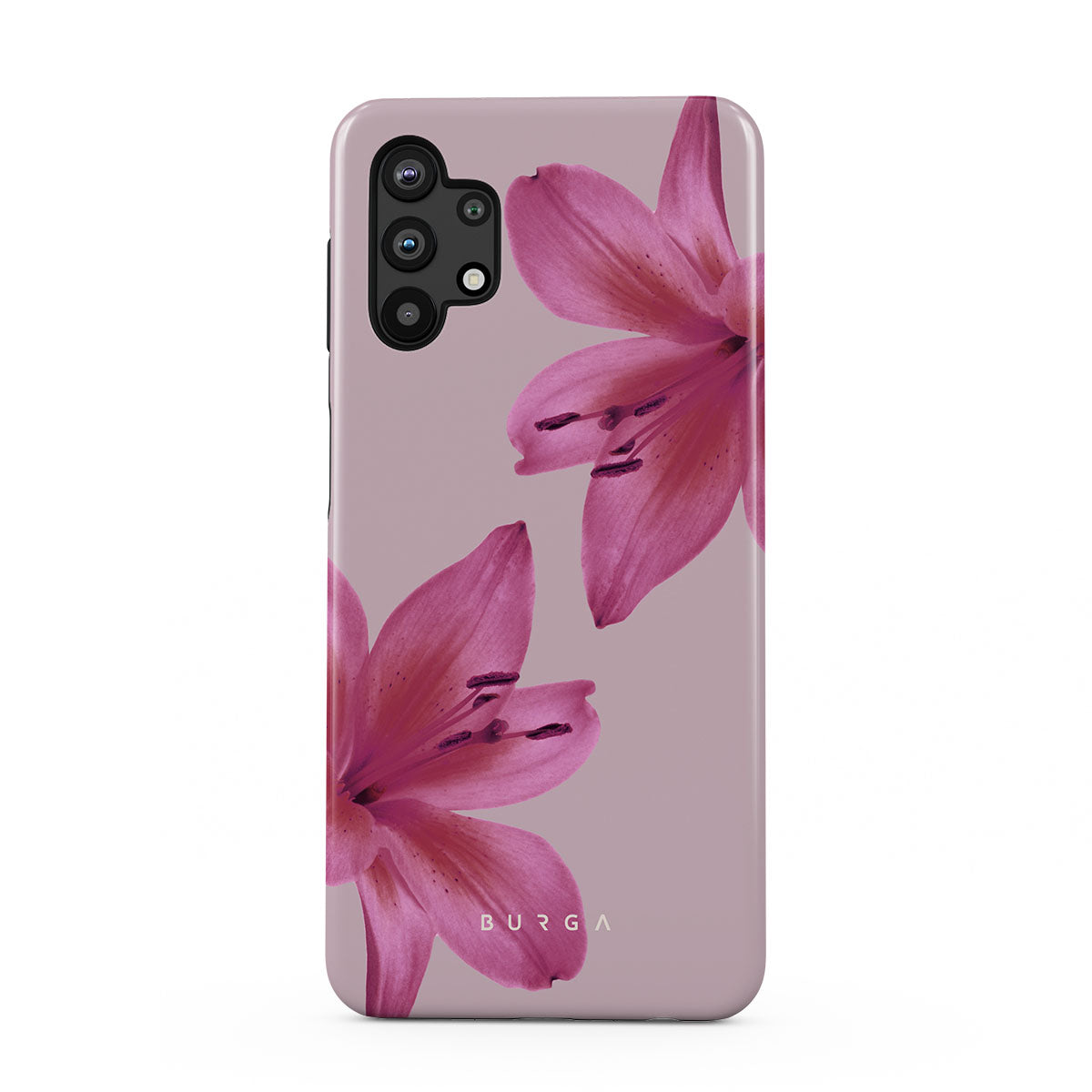 A gentle hush of pink forms where soft lilies sway. Their tender petals — a silent ode to the delicate dance of life. The Fragile Beauty Samsung Galaxy A32 5G phone case design invites you to lean into the soft embrace of nature, letting its subtle rhythms guide your journey.