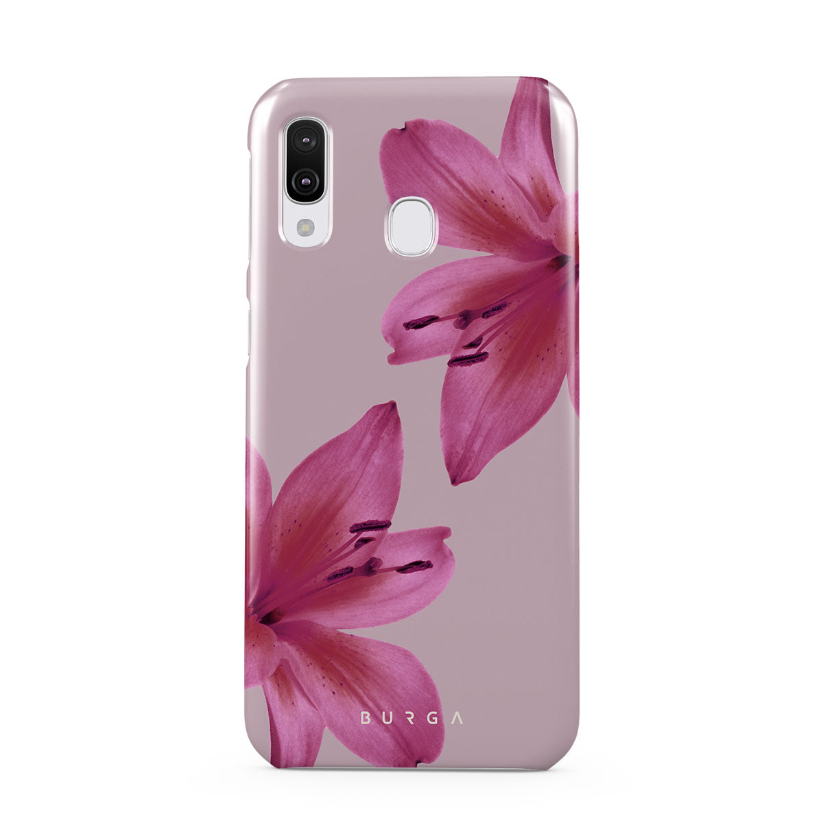 A gentle hush of pink forms where soft lilies sway. Their tender petals — a silent ode to the delicate dance of life. The Fragile Beauty Samsung Galaxy A40 phone case design invites you to lean into the soft embrace of nature, letting its subtle rhythms guide your journey.