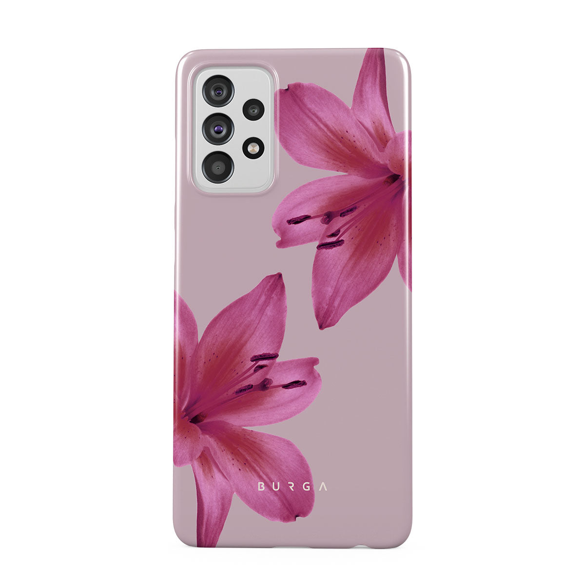 A gentle hush of pink forms where soft lilies sway. Their tender petals — a silent ode to the delicate dance of life. The Fragile Beauty Samsung Galaxy A72 4G / 5G phone case design invites you to lean into the soft embrace of nature, letting its subtle rhythms guide your journey.