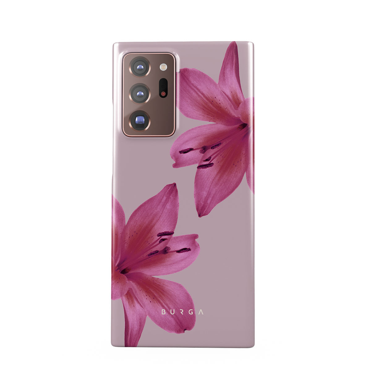 A gentle hush of pink forms where soft lilies sway. Their tender petals — a silent ode to the delicate dance of life. The Fragile Beauty Samsung Galaxy Note 20 Ultra 4G / 5G phone case design invites you to lean into the soft embrace of nature, letting its subtle rhythms guide your journey.