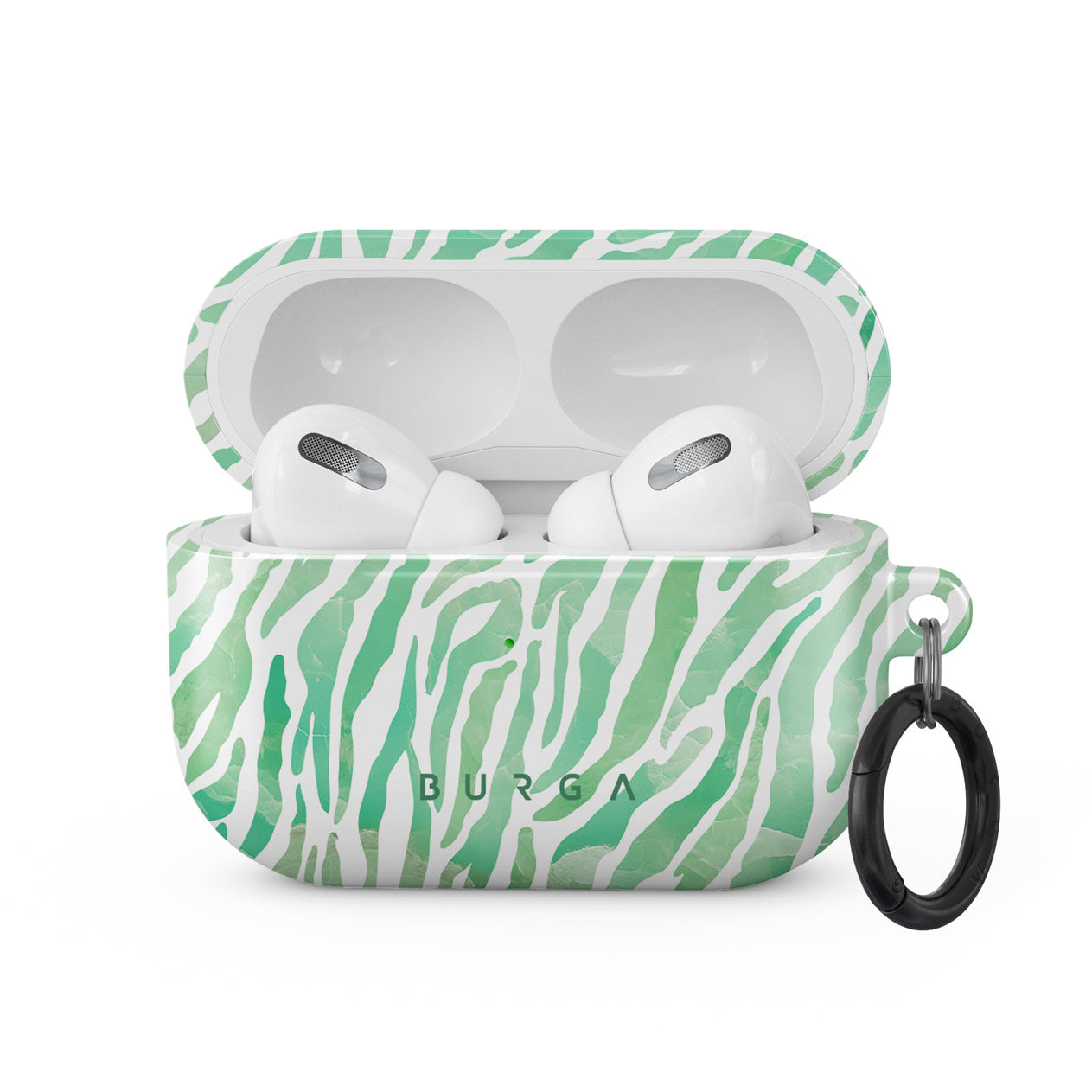 The Free Spirit Apple Airpods Pro case cover combines an exotic zebra pattern with a fresh scheme of green color. Protect your AirPods and make them a trendy part of your style. Fashion can be functional too! Our case fits perfectly snug around Apple Airpods Pro . “Like a glove!” one might say. And it won’t disrupt the wireless charging capabilities of the newer model. There’s even an LED light indicator to prove it (don’t worry, wired charging still works, too). When fitted, the BURGA case will protect the delicate Apple Airpods Pro case beneath it from scratches, bumps, and drops while remaining scratch-free itself. Our signature design pattern prints are High Quality, and will never peel or fade away- thanks to our unique printing technology. And finally, a handy carabiner is there to make your life easier and more convenient: just snap it around your keys or belt loop and tackle the day head-on. Your music is right there by your side when you need it.