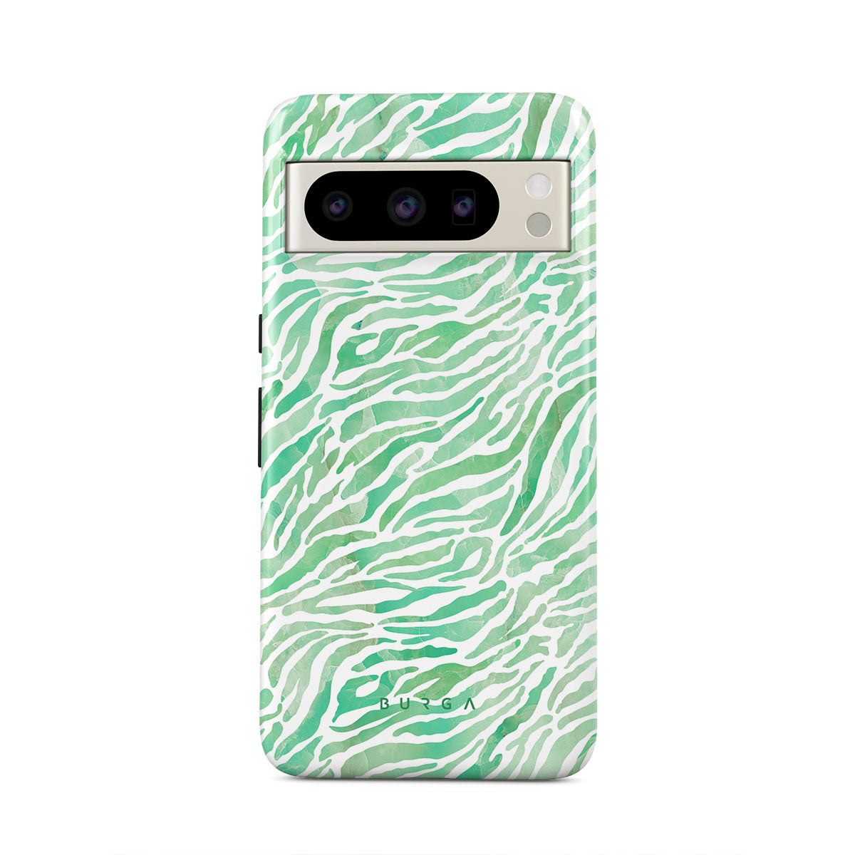 Our Free Spirit Google Pixel 8 Pro phone case features an exotic zebra pattern in varying shades of green. Keep your spirits up, as there is no need to worry about your phone, as this trendy case is not only pretty but offers the heavy-duty protection that your cellphone requires.