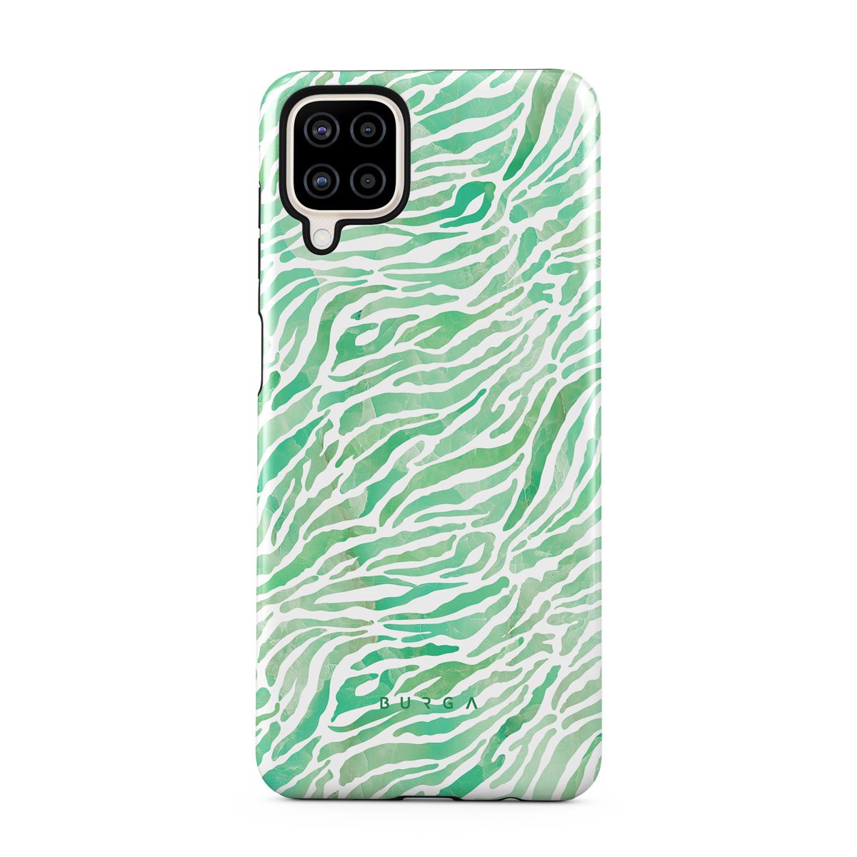 Our Free Spirit Samsung Galaxy A12 4G phone case features an exotic zebra pattern in varying shades of green. Keep your spirits up, as there is no need to worry about your phone, as this trendy case is not only pretty but offers the heavy-duty protection that your cellphone requires.