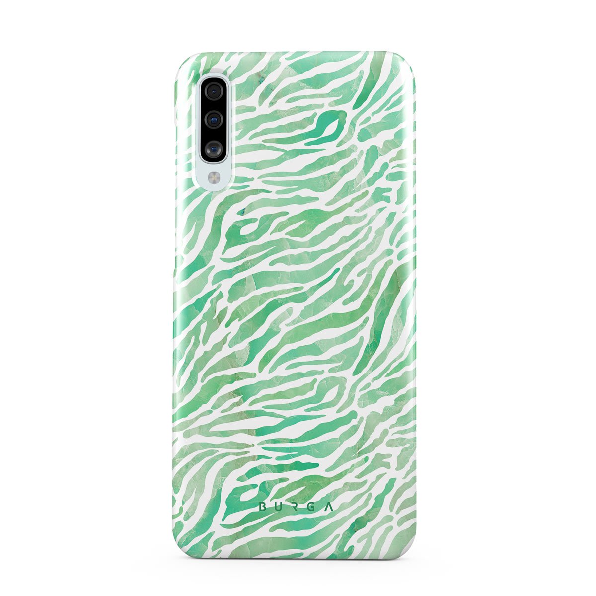 Our Free Spirit Samsung Galaxy A50 phone case features an exotic zebra pattern in varying shades of green. Keep your spirits up, as there is no need to worry about your phone, as this trendy case is not only pretty but offers the heavy-duty protection that your cellphone requires.
