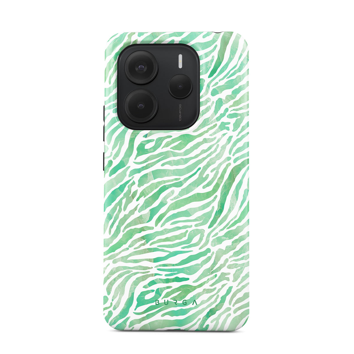 Our Free Spirit Xiaomi Redmi Note 14 5G phone case features an exotic zebra pattern in varying shades of green. Keep your spirits up, as there is no need to worry about your phone, as this trendy case is not only pretty but offers the heavy-duty protection that your cellphone requires.