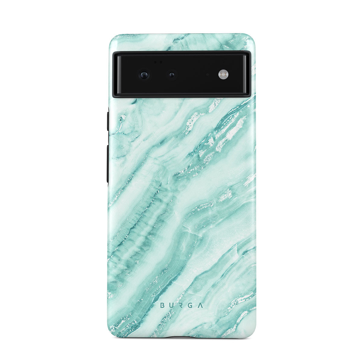 Add freshness to your style with our Fresh Breeze Google Pixel 6a phone case. The soft cyan color of the case is emphasized in a unique marble pattern. Do not let the softness of the color deceive you; the case still offers heavy-duty protection for your cellphone.