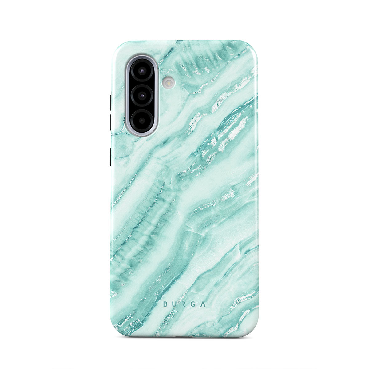Add freshness to your style with our Fresh Breeze Samsung Galaxy A36 5G phone case. The soft cyan color of the case is emphasized in a unique marble pattern. Do not let the softness of the color deceive you; the case still offers heavy-duty protection for your cellphone.