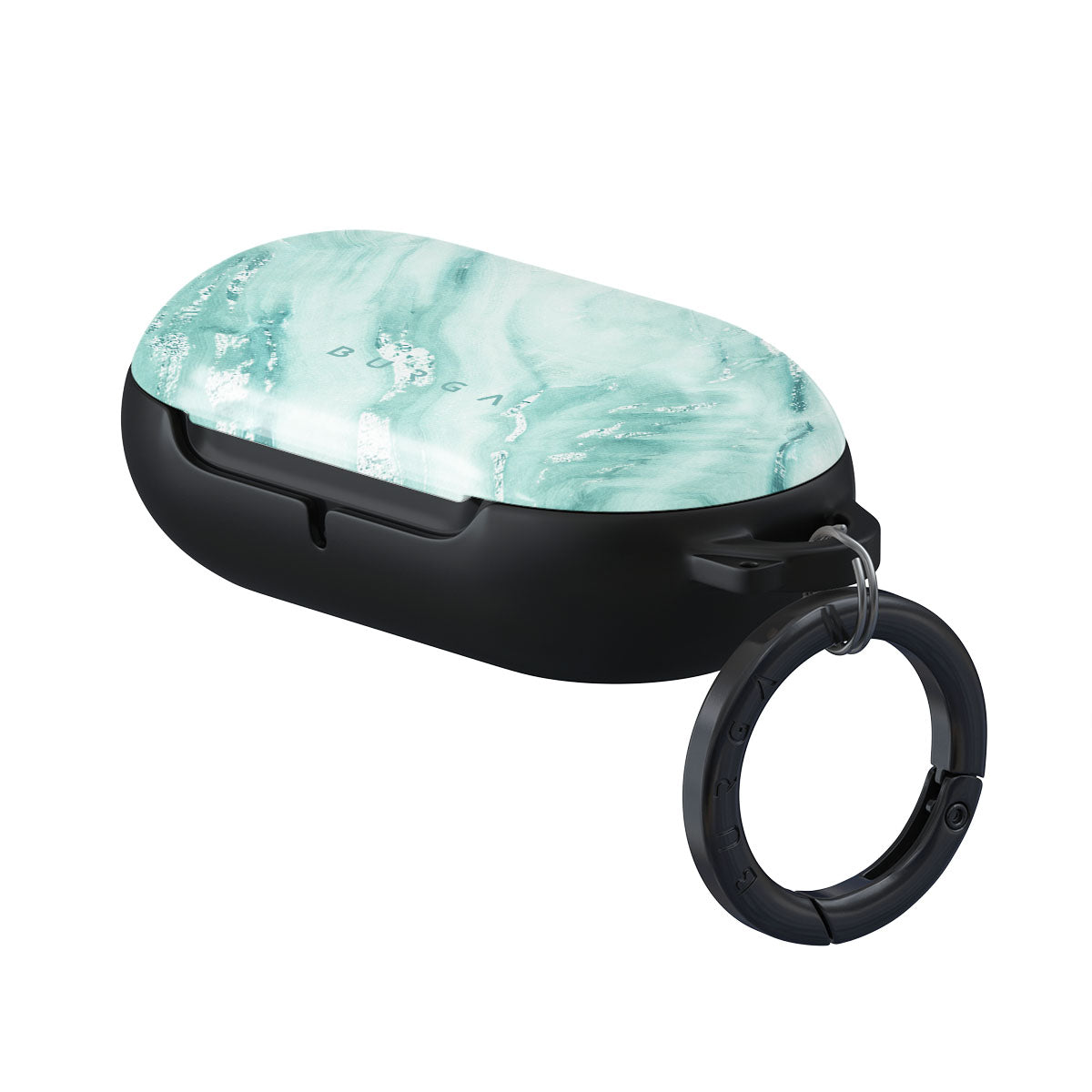 Add some freshness to your style with our Fresh Breeze Samsung Galaxy Buds Headphones case cover. A soft cyan color showcased in a trendy marble pattern will add a pop of color to your accessory game, but do not let the color deceive you; the cover still offers a 360° protection for your Samsung Galaxy Buds case. Our case fits perfectly snug around Samsung Galaxy Buds Headphones. “Like a glove!” one might say. And it won’t disrupt the wireless charging capabilities of the newer model. There’s even an LED light indicator to prove it (don’t worry, wired charging still works, too). When fitted, the BURGA case will protect the delicate Samsung Galaxy Buds Headphones case beneath it from scratches, bumps, and drops while remaining scratch-free itself. Our signature design pattern prints are High Quality, and will never peel or fade away- thanks to our unique printing technology. And finally, a handy carabiner is there to make your life easier and more convenient: just snap it around your keys or belt loop and tackle the day head-on. Your music is right there by your side when you need it.