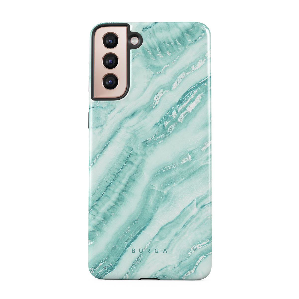 Add freshness to your style with our Fresh Breeze Samsung Galaxy S21 Plus phone case. The soft cyan color of the case is emphasized in a unique marble pattern. Do not let the softness of the color deceive you; the case still offers heavy-duty protection for your cellphone.