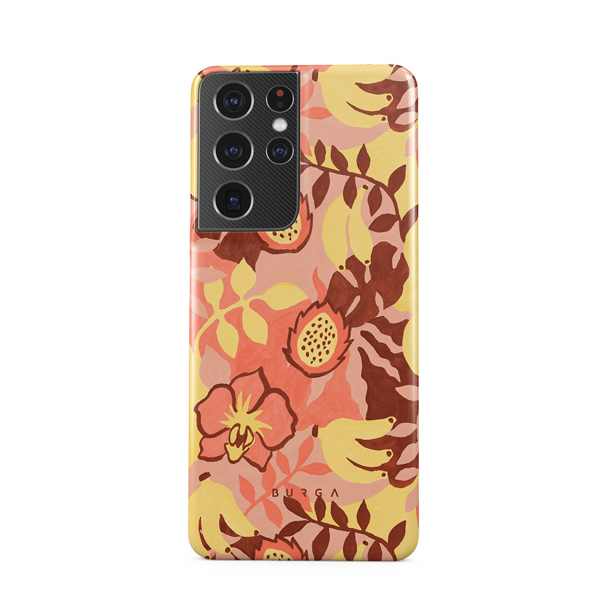 Half still life, half daydream. Fruit that doesn’t know it’s art, floating in a cloud of warm pink. This Samsung Galaxy S21 Ultra phone case design is giving: “I only eat mangoes in bed.”