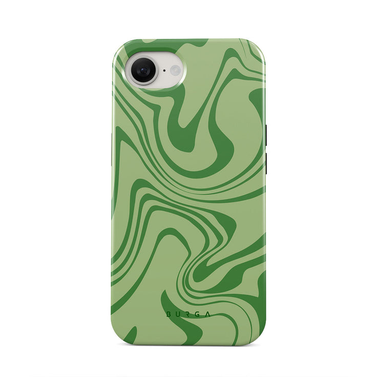 Our Funky Sensation iPhone 16e phone case design is a perfect abstract piece for those who love soft pastel colors but still want to stand out. A sharper take on the liquid swirl design in green shades will accompany your device perfectly.