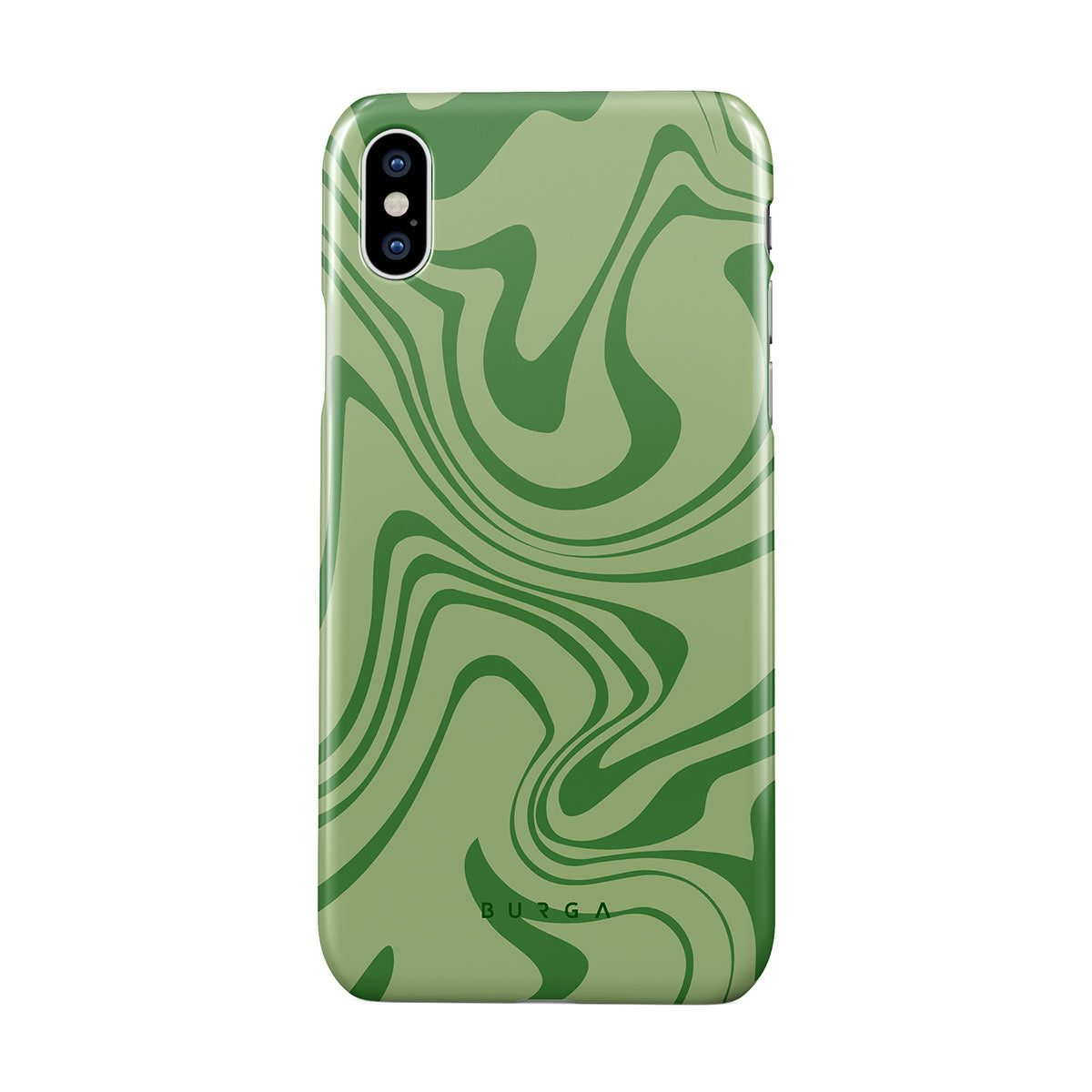 Our Funky Sensation iPhone XS Max phone case design is a perfect abstract piece for those who love soft pastel colors but still want to stand out. A sharper take on the liquid swirl design in green shades will accompany your device perfectly.
