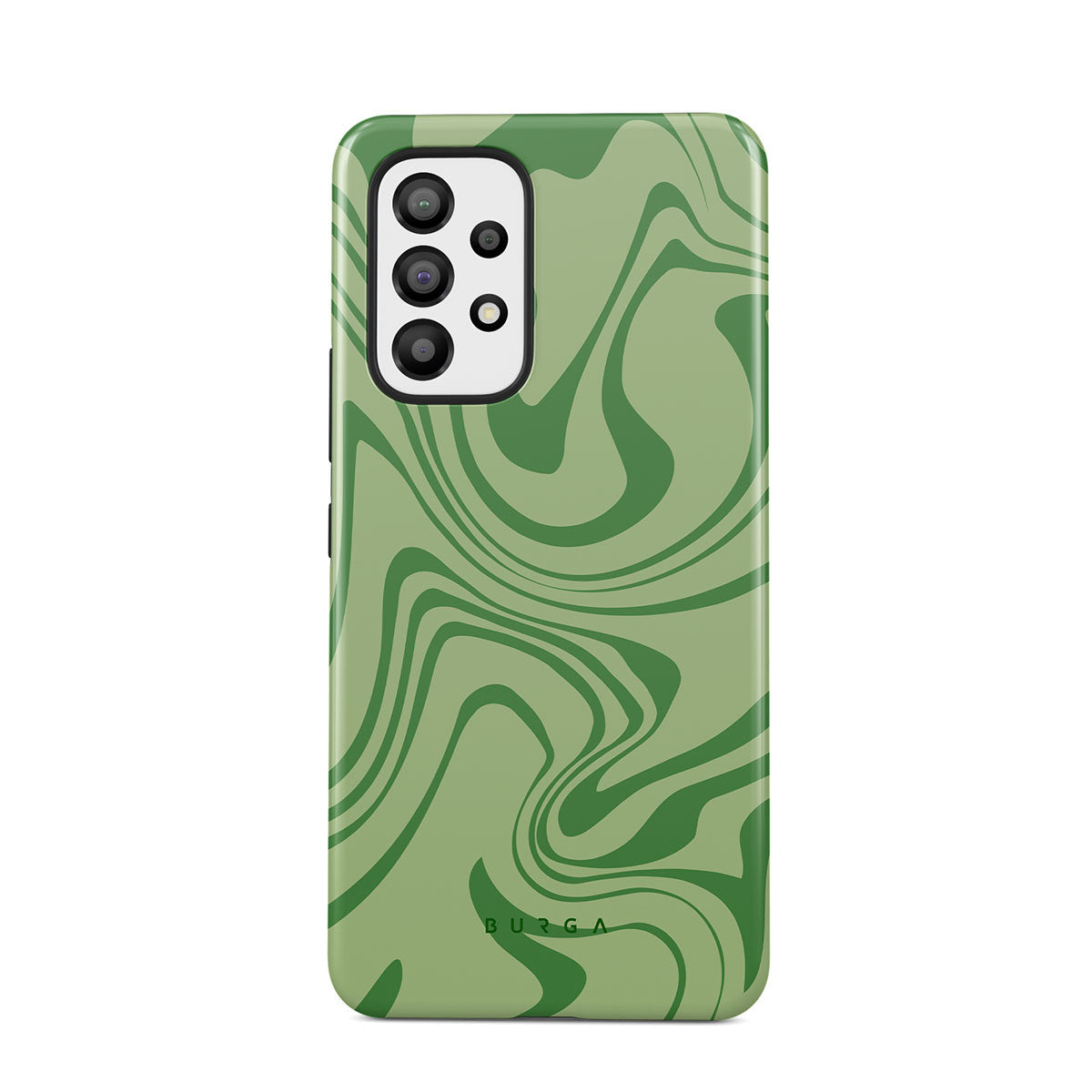 Our Funky Sensation Samsung Galaxy A33 phone case design is a perfect abstract piece for those who love soft pastel colors but still want to stand out. A sharper take on the liquid swirl design in green shades will accompany your device perfectly.