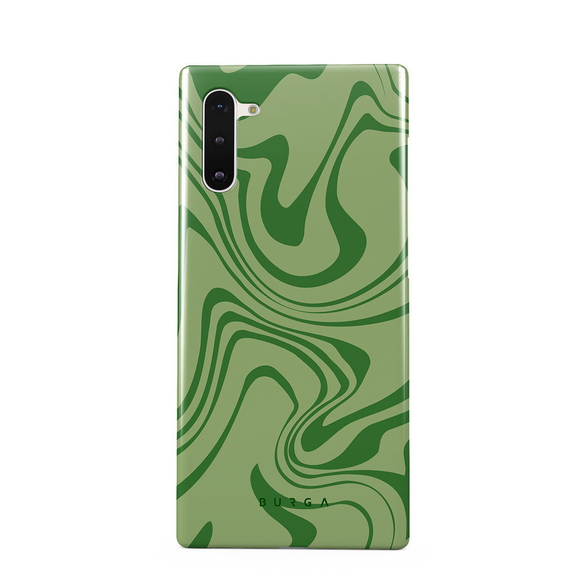 Our Funky Sensation Samsung Galaxy Note 10 phone case design is a perfect abstract piece for those who love soft pastel colors but still want to stand out. A sharper take on the liquid swirl design in green shades will accompany your device perfectly.