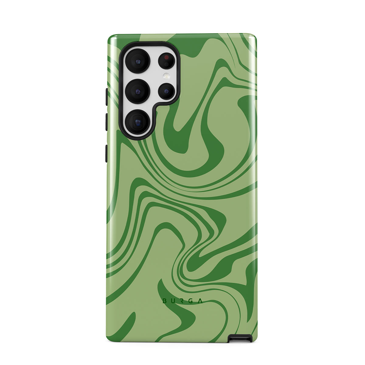 Our Funky Sensation Samsung Galaxy S22 Ultra phone case design is a perfect abstract piece for those who love soft pastel colors but still want to stand out. A sharper take on the liquid swirl design in green shades will accompany your device perfectly.