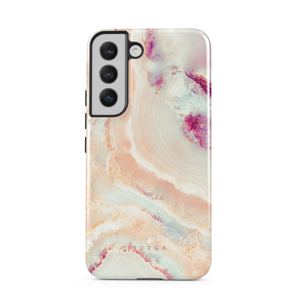 The soft color scheme of coral, pink, blue, and purple of our Berry Sorbet Samsung Galaxy S22 phone case radiates soft girly vibes. The feminine touch is felt throughout the design, making it an excellent choice to add to the springtime wardrobe and protect your phone from scratches and falls.
