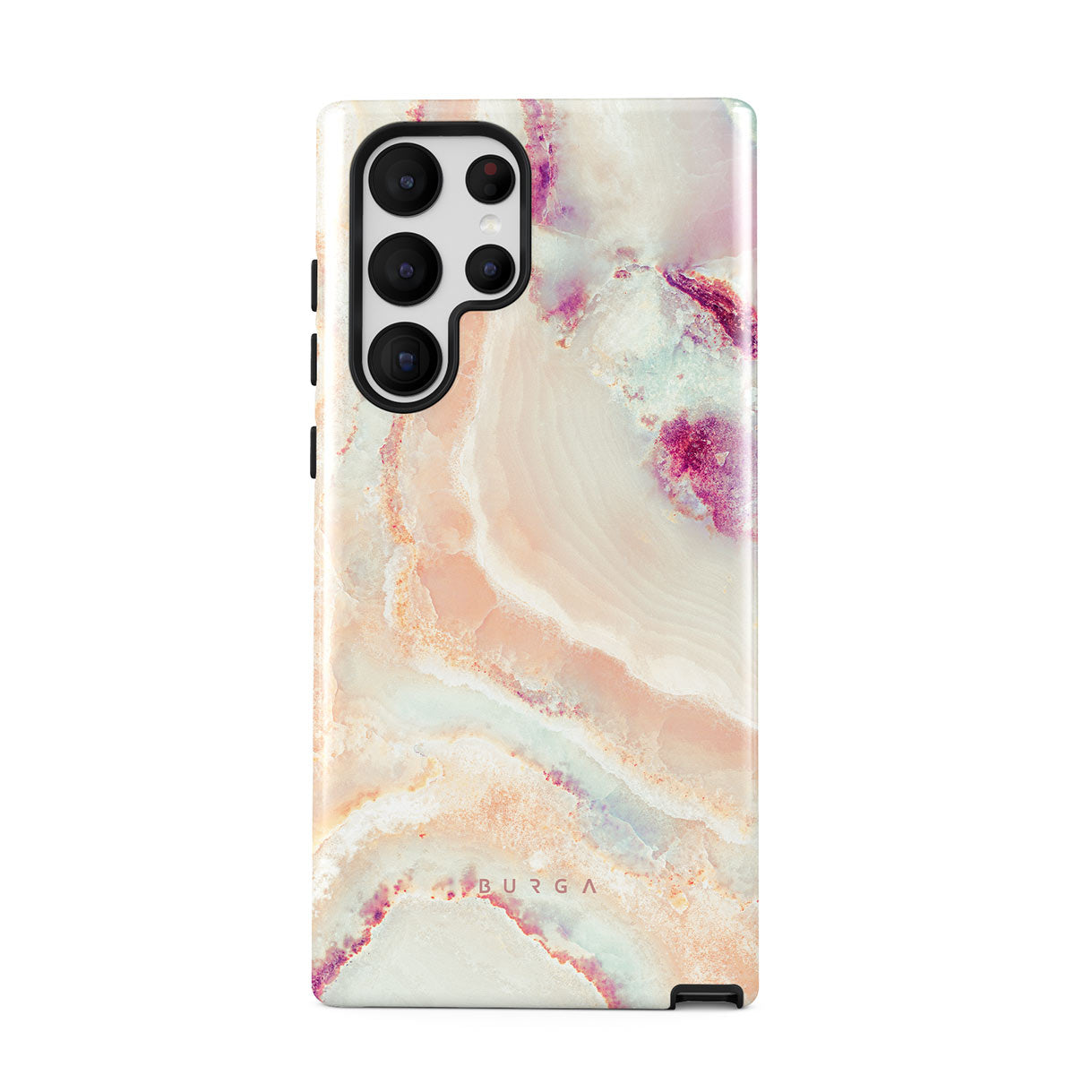 The soft color scheme of coral, pink, blue, and purple of our Berry Sorbet Samsung Galaxy S22 Ultra phone case radiates soft girly vibes. The feminine touch is felt throughout the design, making it an excellent choice to add to the springtime wardrobe and protect your phone from scratches and falls.