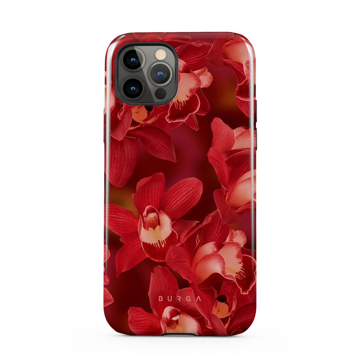 The deep red orchids emerge with a passionate intensity, evoking the fervor and depth of emotions that come with fully experiencing life. They are a vibrant call to embrace every heartbeat, to live deeply and love boldly. Discover the Goddess Energy iPhone 12 Pro phone case design.