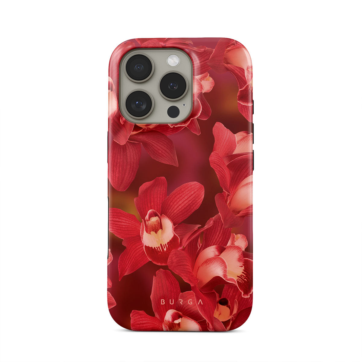 The deep red orchids emerge with a passionate intensity, evoking the fervor and depth of emotions that come with fully experiencing life. They are a vibrant call to embrace every heartbeat, to live deeply and love boldly. Discover the Goddess Energy iPhone 16 Pro phone case design.