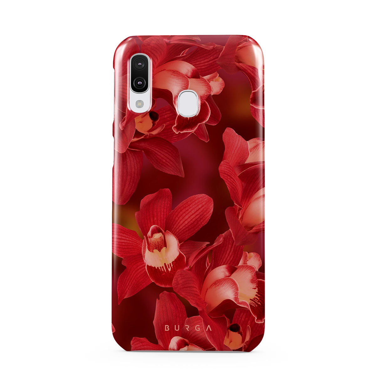 The deep red orchids emerge with a passionate intensity, evoking the fervor and depth of emotions that come with fully experiencing life. They are a vibrant call to embrace every heartbeat, to live deeply and love boldly. Discover the Goddess Energy Samsung Galaxy A40 phone case design.