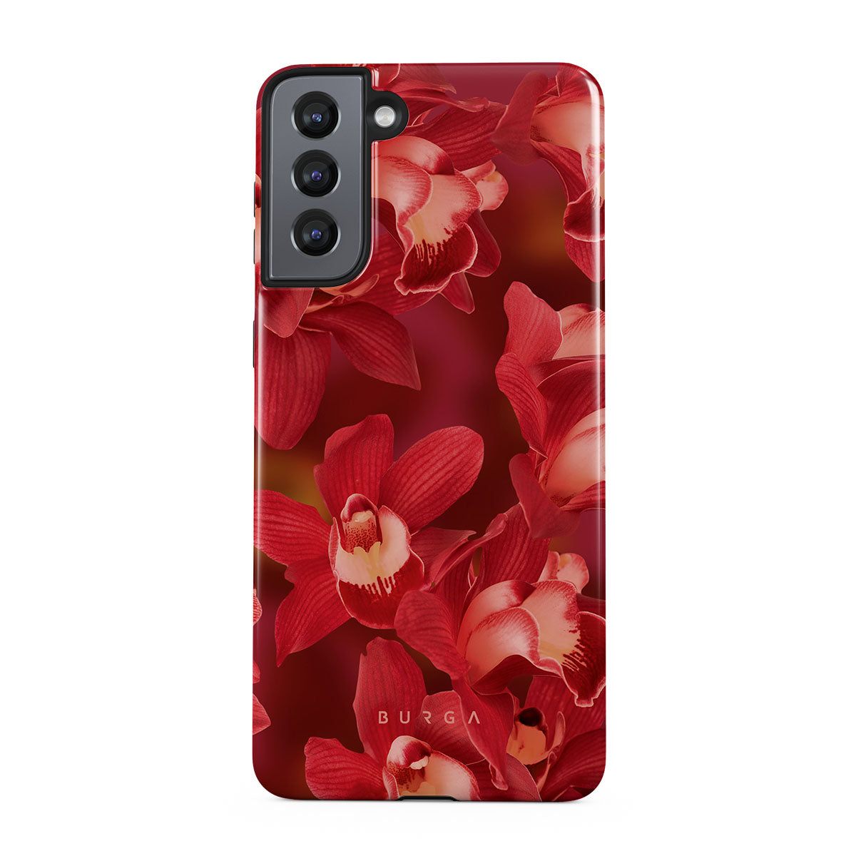 The deep red orchids emerge with a passionate intensity, evoking the fervor and depth of emotions that come with fully experiencing life. They are a vibrant call to embrace every heartbeat, to live deeply and love boldly. Discover the Goddess Energy Samsung Galaxy S21 phone case design.