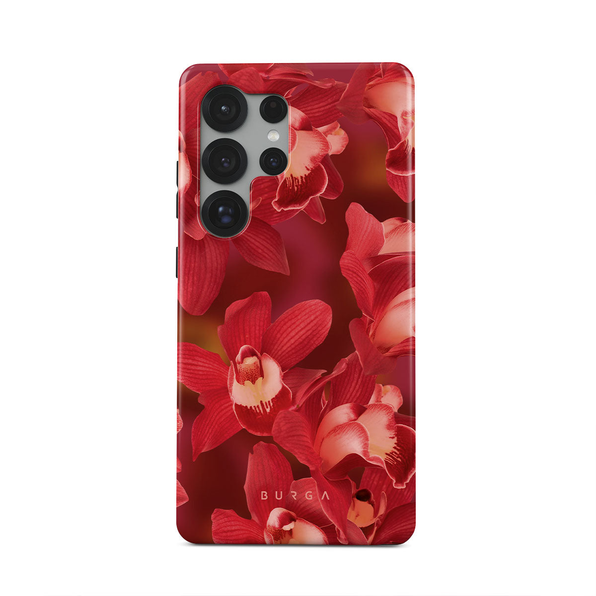 The deep red orchids emerge with a passionate intensity, evoking the fervor and depth of emotions that come with fully experiencing life. They are a vibrant call to embrace every heartbeat, to live deeply and love boldly. Discover the Goddess Energy Samsung Galaxy S25 Ultra phone case design.
