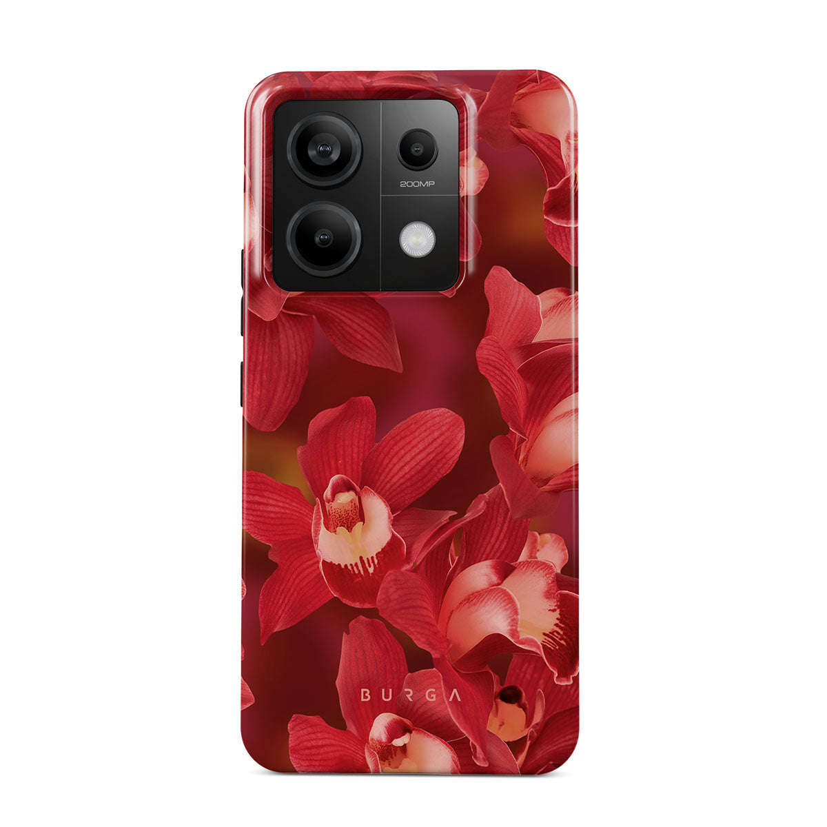 The deep red orchids emerge with a passionate intensity, evoking the fervor and depth of emotions that come with fully experiencing life. They are a vibrant call to embrace every heartbeat, to live deeply and love boldly. Discover the Goddess Energy Xiaomi Redmi Note 13 Pro 5G phone case design.