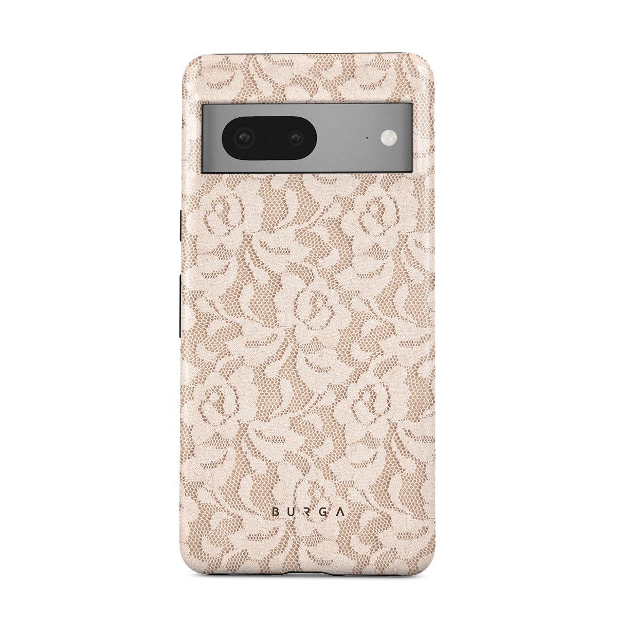 Step into a world of vintage sophistication with the Gone Country Google Pixel 7a phone case. Featuring an intricate neutral lace pattern, this design exudes grace and refinement. It's a tribute to the elegant side of country life—ideal for those who love to keep things classy.