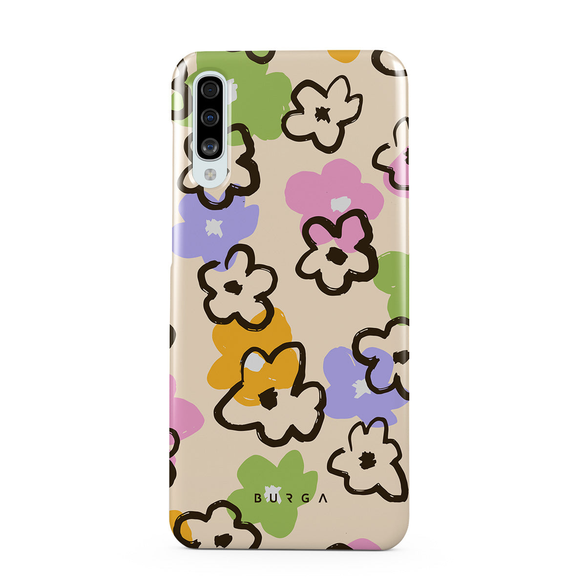Let these dreamy pastel tones take you to a world brimming with joy, infectious positivity, and Good Vibes! Our playful Samsung Galaxy A50 phone case boasts a beautiful mix of flowers doodled in unique sizes, shapes, and hues, each with their own charm. Whether you're a nostalgic enthusiast or a trendsetter, this case is sure to turn heads and make you stand out from the crowd.