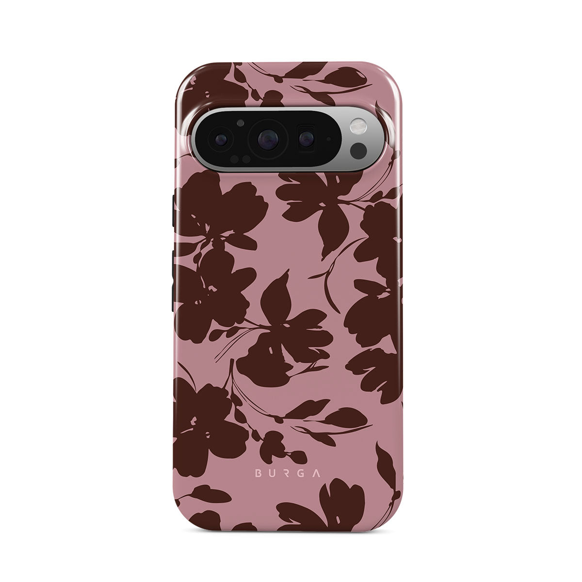 Quietly bold, our Gossip Google Pixel 9 Pro XL phone case design speaks volumes in subtlety. A soft rosé background, layered with deep red-brown floral accents, gives off a refined, almost mysterious vibe. It's for those who let the details do the talking.